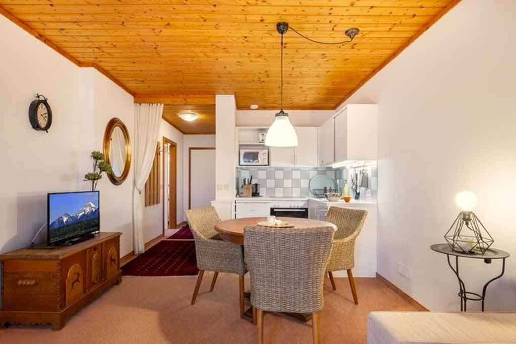 Ein heller Wohnbereich mit Kochnische und Essplatz sowie Dusche und separates WC sorgen für angenehmen Komfort während Ihres Aufenthalts.