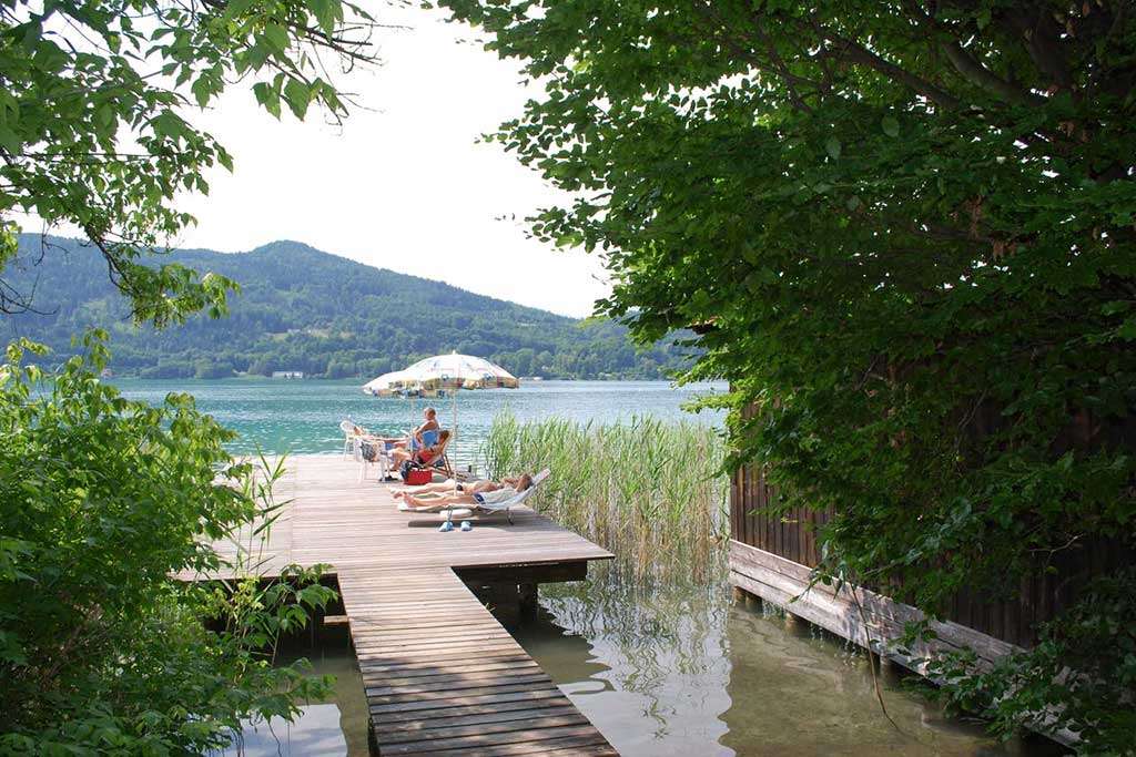Kein Steg wie jeder andere, sondern ein kleiner Holzsteg nur für die Gäste unseres Hauses - Ihr ganz persönlicher Zugang zum See. Frühmorgens gehört er Ihnen allein, mittags wird er zum Sonnenplatz, abends zum Lieblingsort für alles, was man nicht in Worte fassen muss.